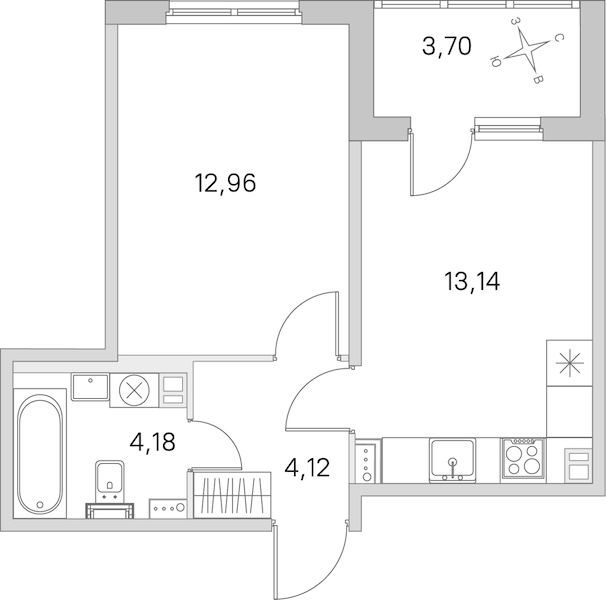 • Площадь кухни13,14 м2