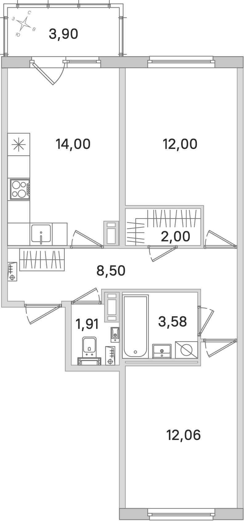 - Площадь54,05 м2