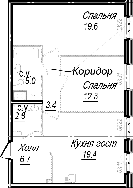 • Площадь кухни19,4 м2