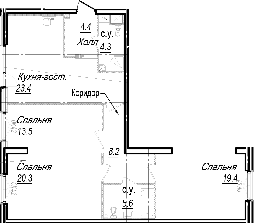 • Площадь кухни23,4 м2