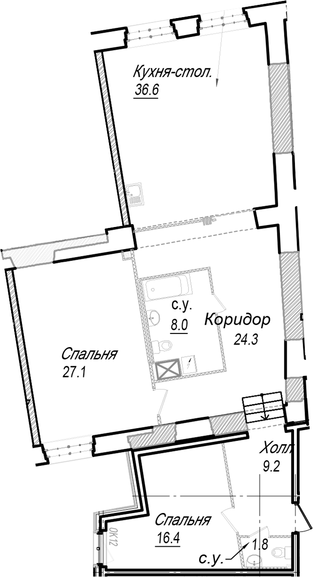• Площадь кухни36,6 м2