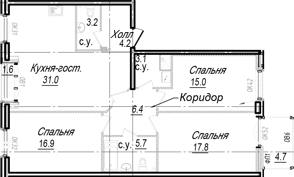 Трёхкомнатная квартира на 5-ом этаже 102,2 кв.м