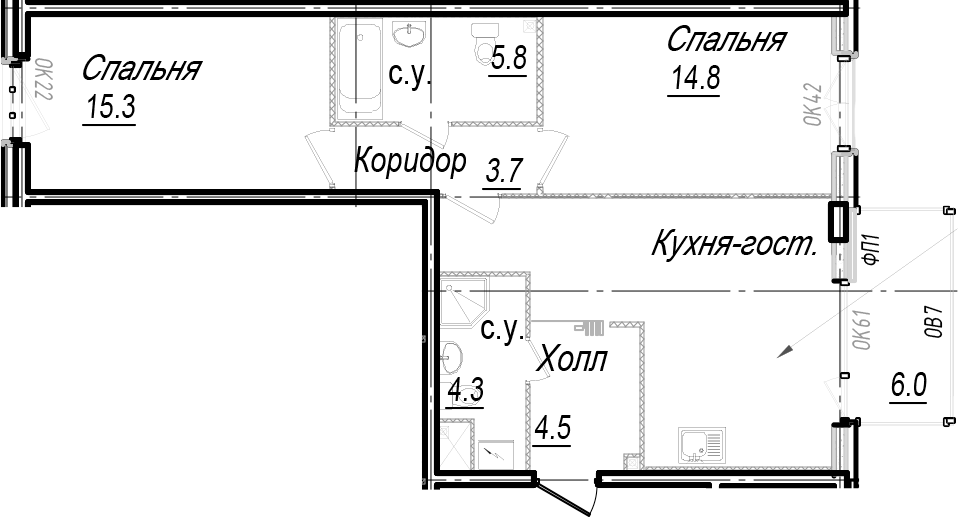 - Количество комнат2