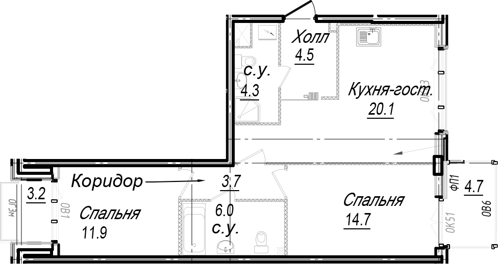 • Площадь кухни20,1 м2