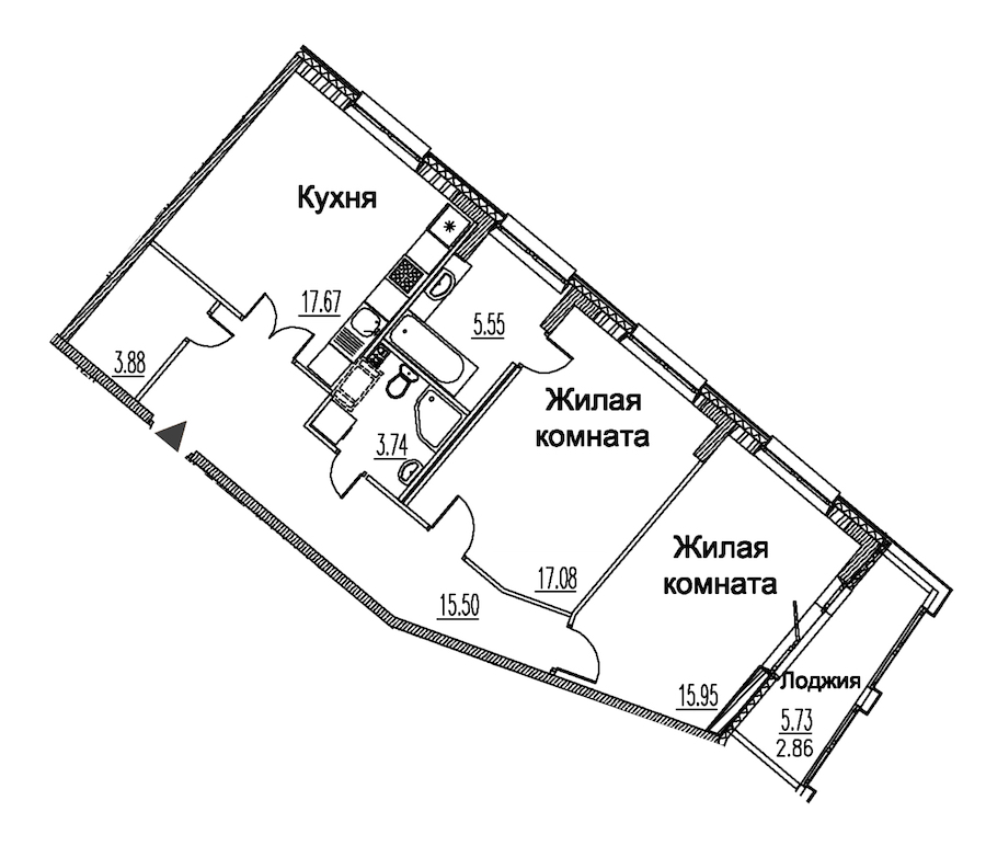 - Площадь кухни17,67 м2
