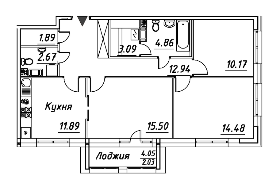 - Площадь кухни11,89 м2