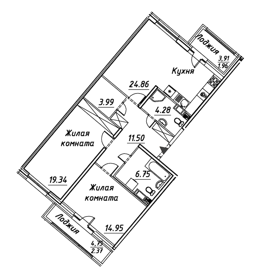 - Площадь кухни24,86 м2