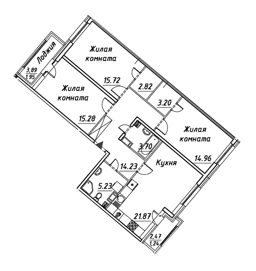- Площадь кухни21,87 м2
