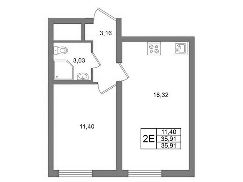 • Площадь35,91 м2