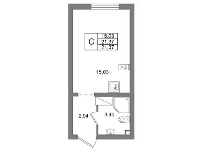 Квартира-студия на 9-ом этаже 21,37 кв.м