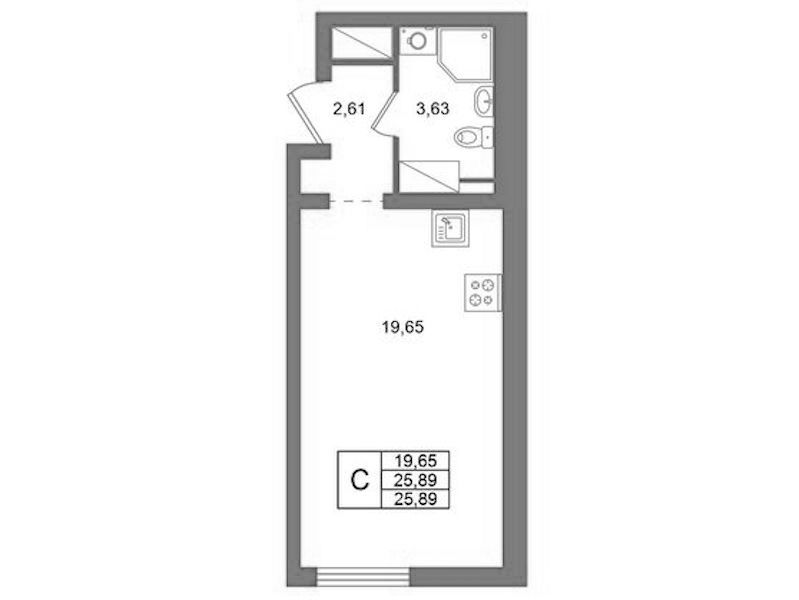 Квартира-студия на 9-ом этаже 25,89 кв.м