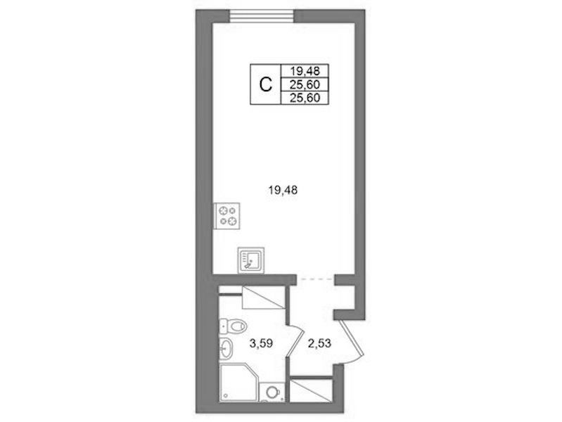• Площадь25,6 м2