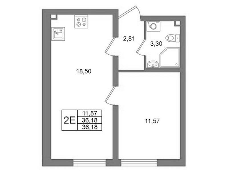 Однокомнатная квартира на 6-ом этаже 36,18 кв.м