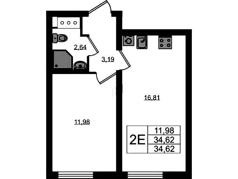 • Площадь34,62 м2