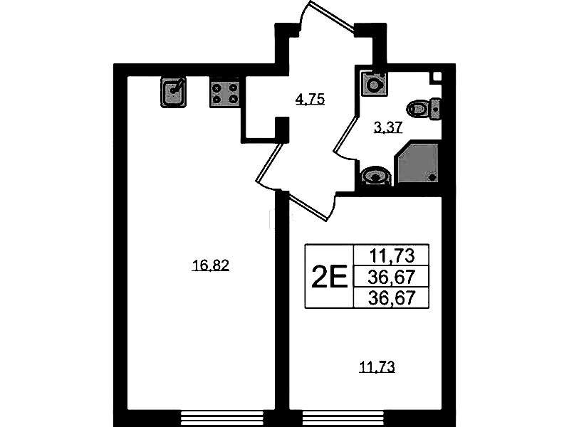 - Площадь36,67 м2