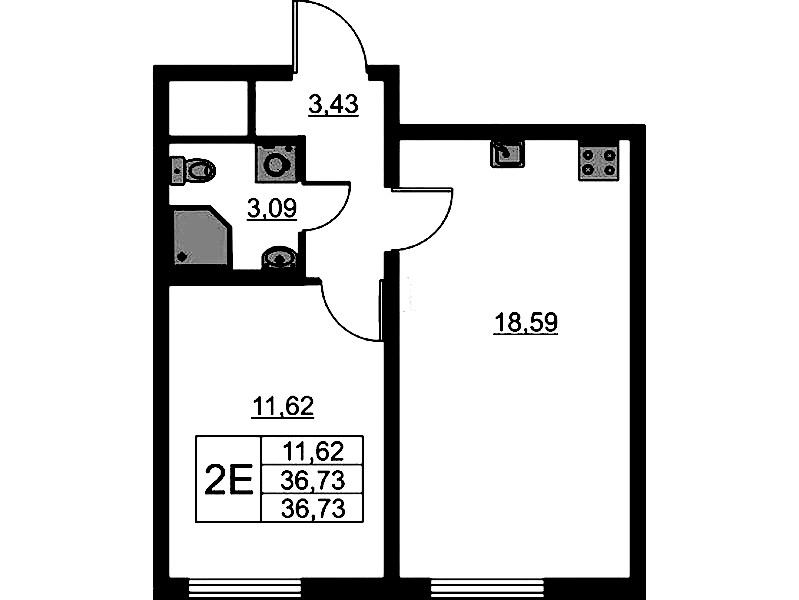 - Площадь36,73 м2