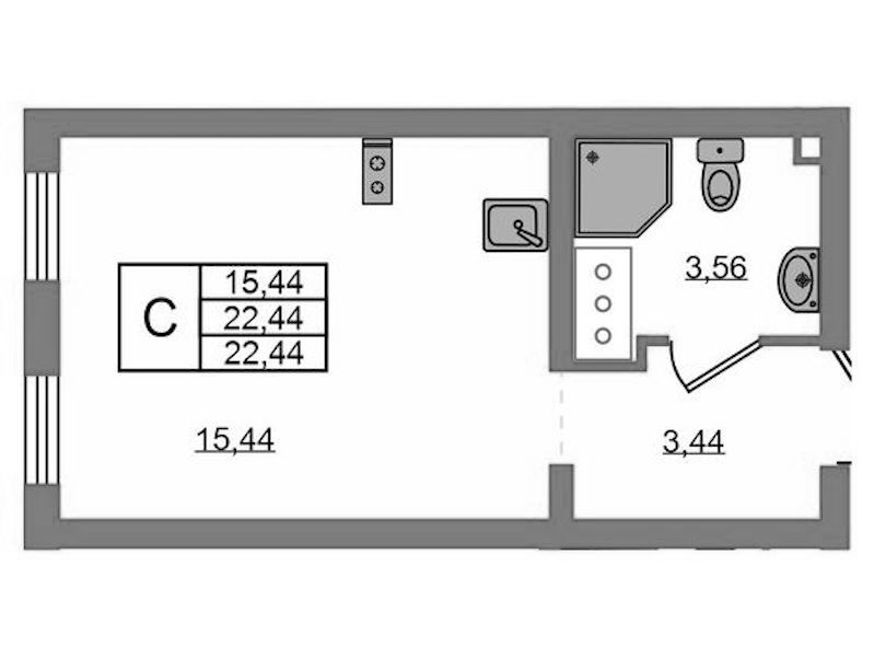 Квартира-студия на 12-ом этаже 22,74 кв.м