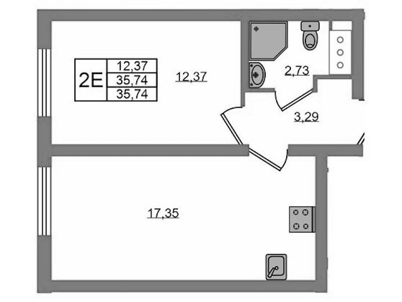 Однокомнатная квартира на 15-ом этаже 35,62 кв.м