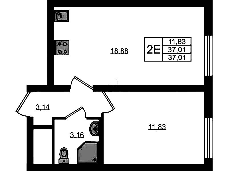 Однокомнатная квартира на 4-ом этаже 36,85 кв.м