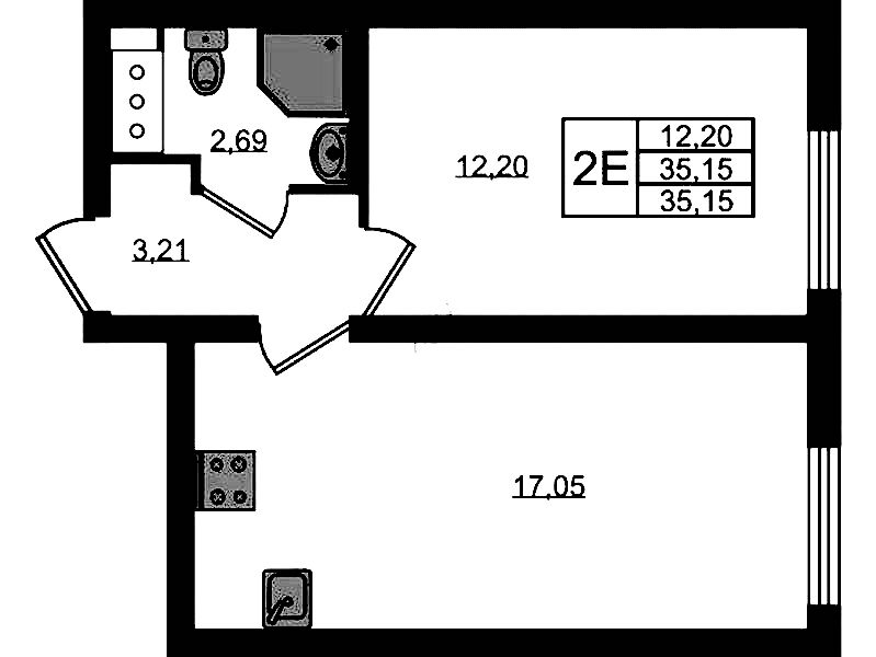 Однокомнатная квартира на 6-ом этаже 35,05 кв.м
