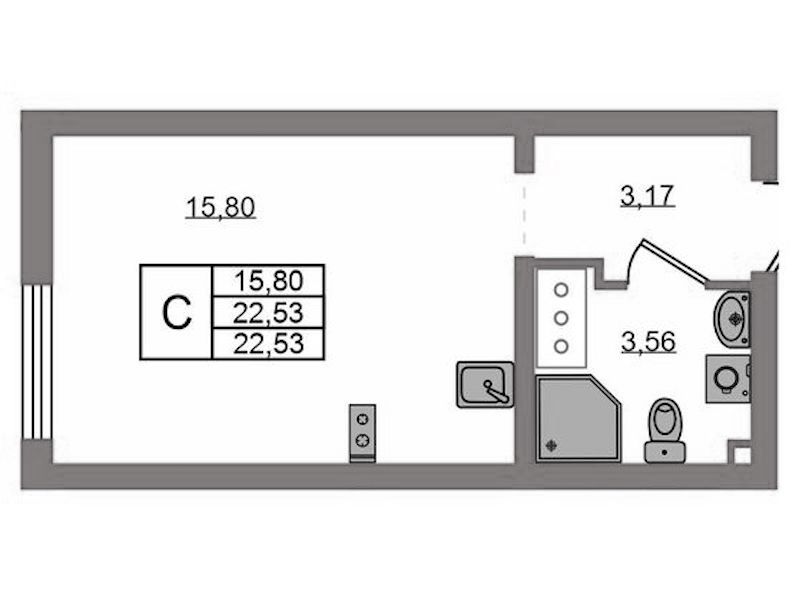 Квартира-студия на 8-ом этаже 22,83 кв.м