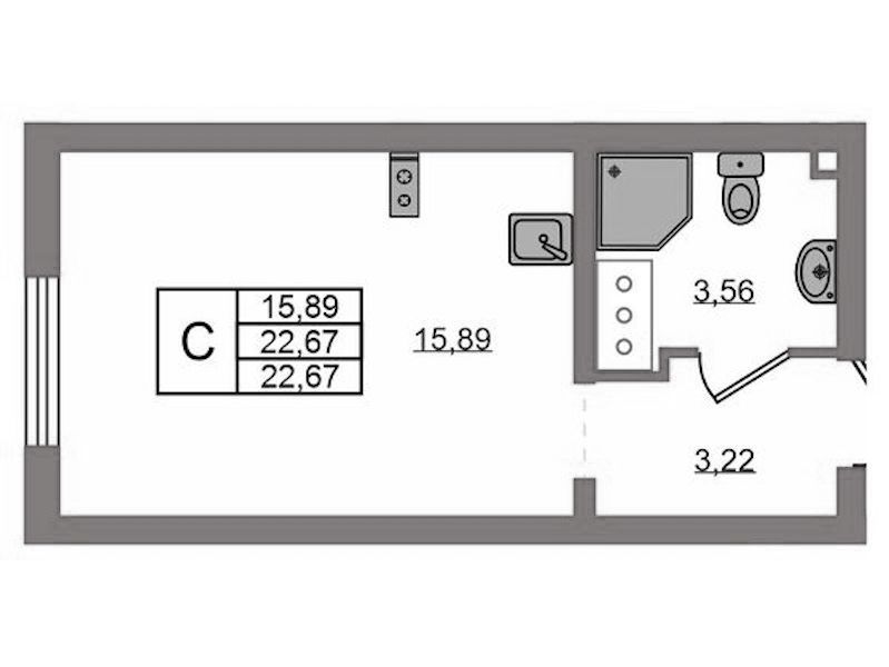 Квартира-студия на 8-ом этаже 22,96 кв.м