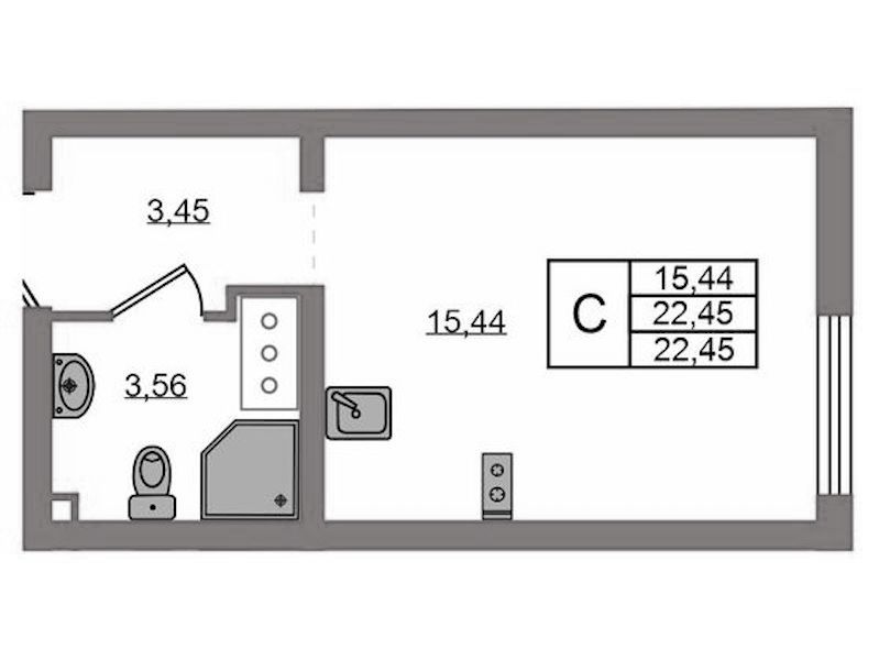 Квартира-студия на 8-ом этаже 22,75 кв.м