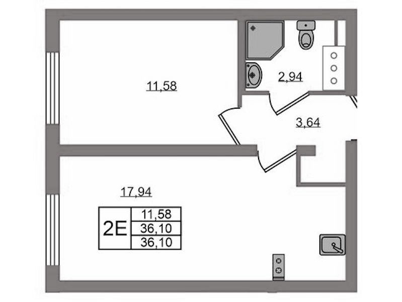 Однокомнатная квартира на 11-ом этаже 35,98 кв.м