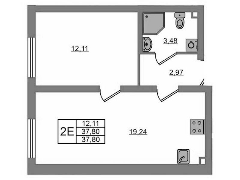 Однокомнатная квартира на 17-ом этаже 37,62 кв.м