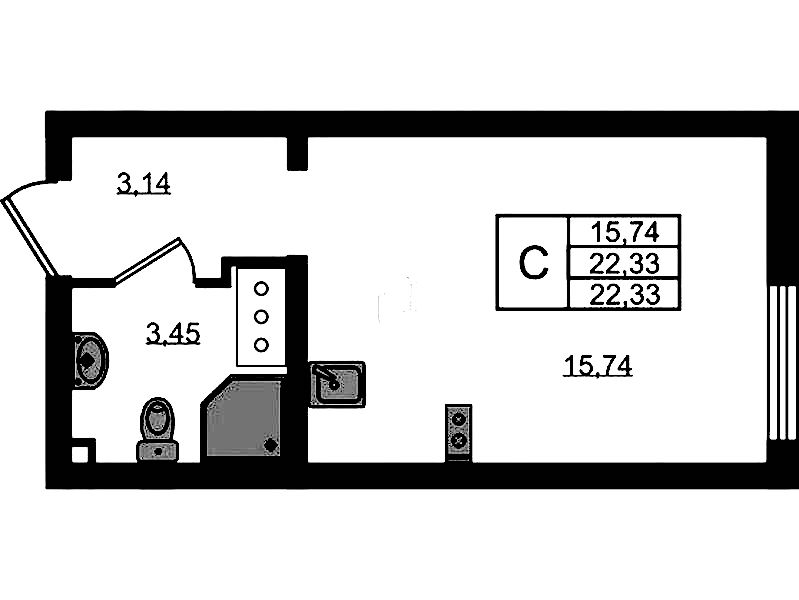 - Площадь22,33 м2