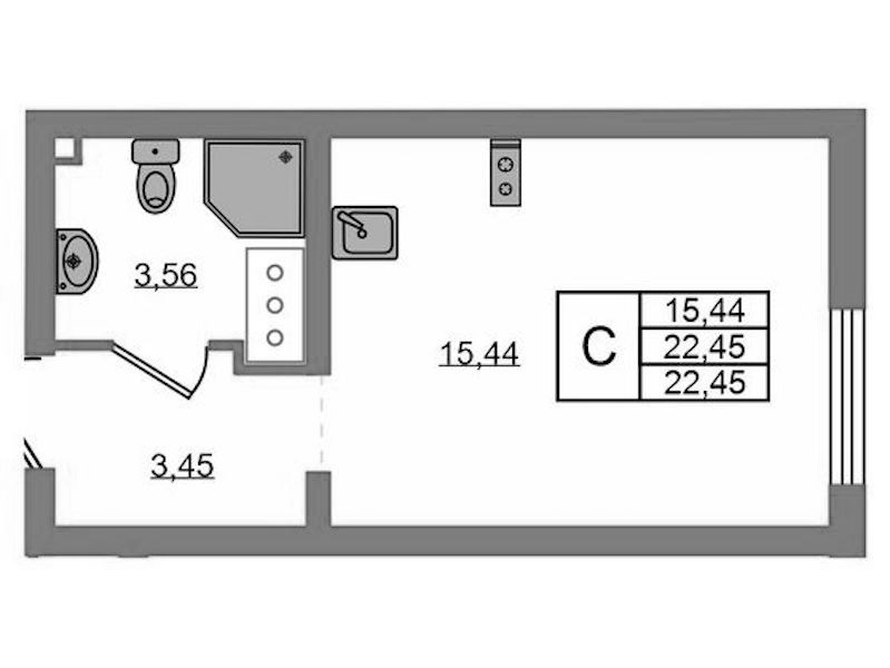 Квартира-студия на 9-ом этаже 22,45 кв.м