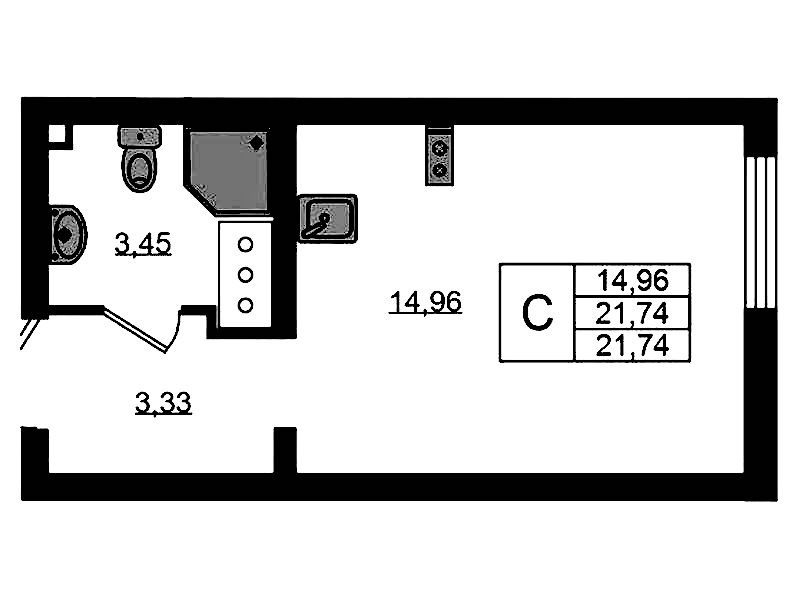 Квартира-студия на 22-ом этаже 21,7 кв.м