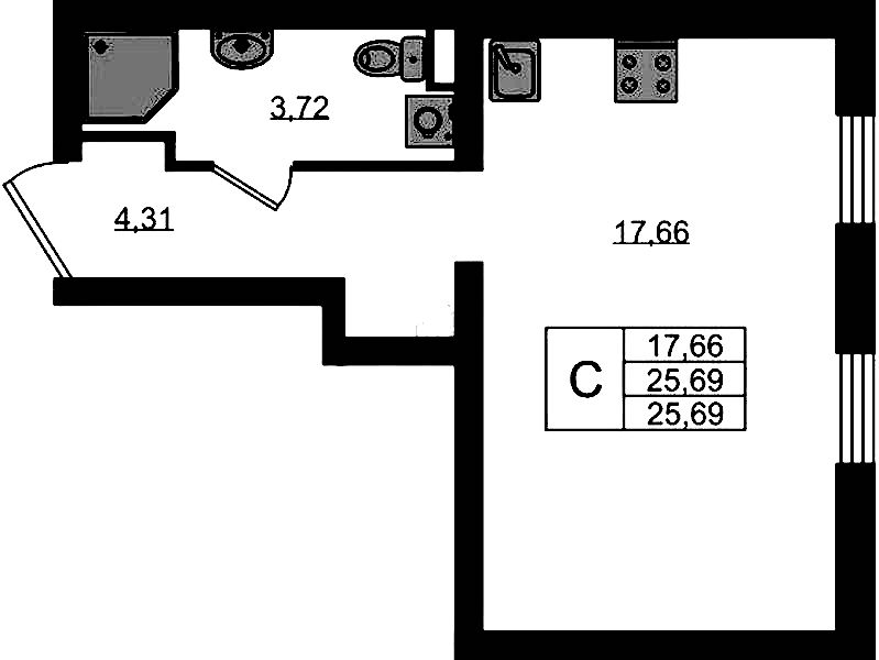 - Площадь25,69 м2