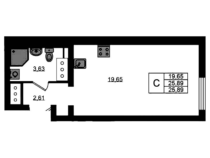 • Площадь25,89 м2