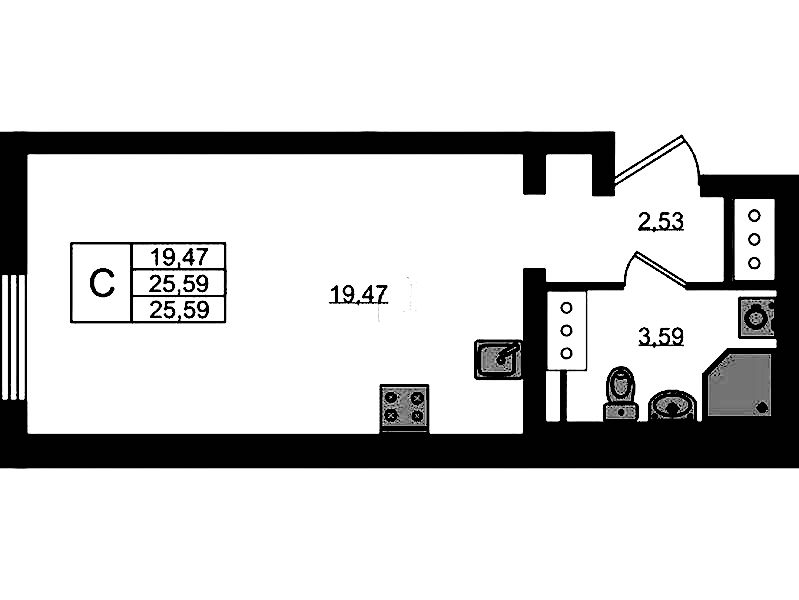 Квартира-студия на 6-ом этаже 25,59 кв.м