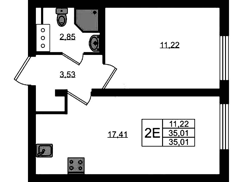Однокомнатная квартира на 12-ом этаже 35,01 кв.м