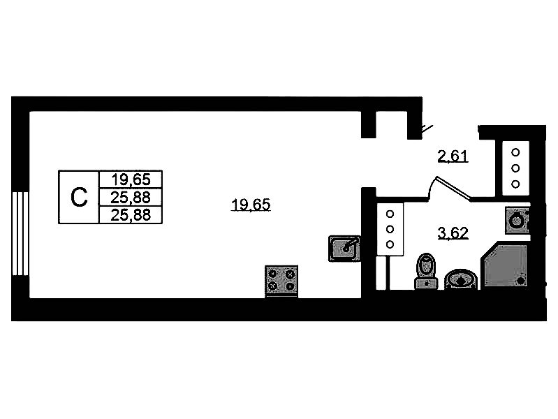 Квартира-студия на 12-ом этаже 25,88 кв.м