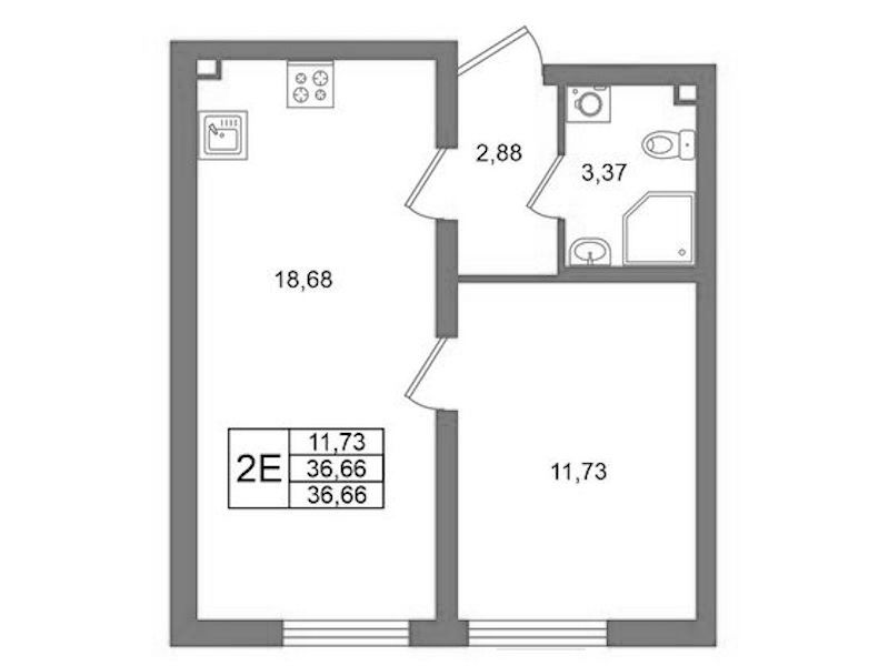 • Площадь36,66 м2