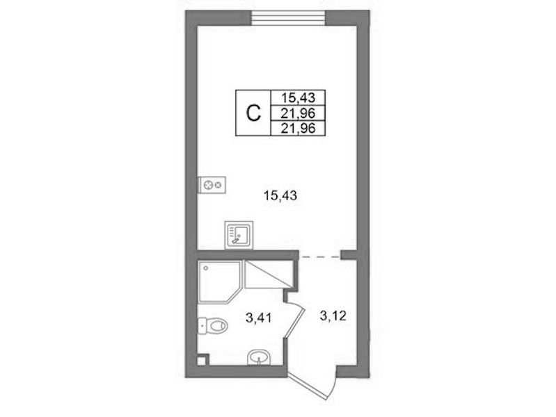 Квартира-студия на 17-ом этаже 21,96 кв.м