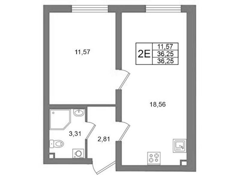 Однокомнатная квартира на 6-ом этаже 36,25 кв.м