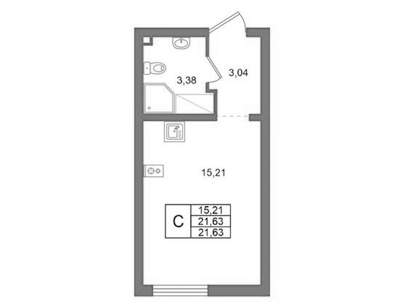 Квартира-студия на 6-ом этаже 21,63 кв.м
