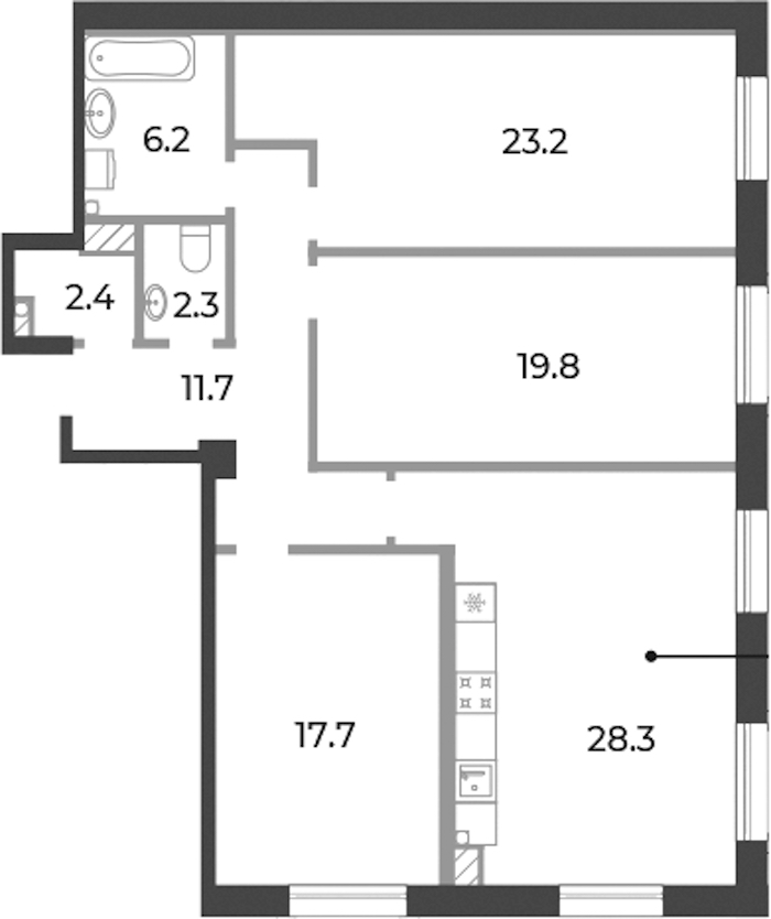 Трёхкомнатная квартира на 6-ом этаже 112,5 кв.м