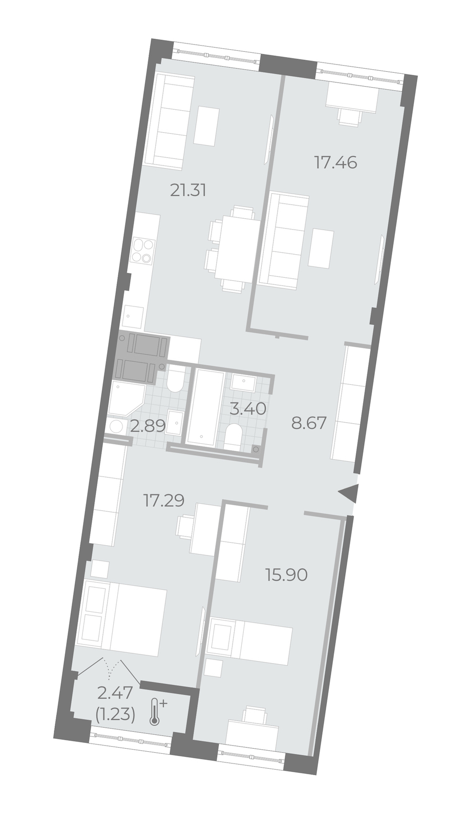 Трёхкомнатная квартира на 7-ом этаже 88,3 кв.м