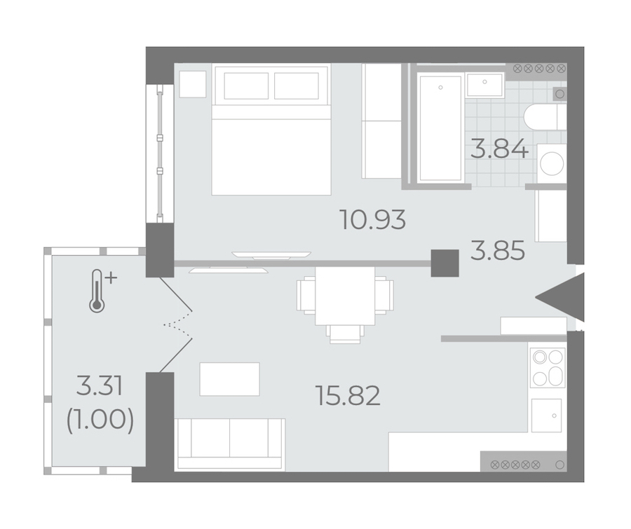 - Площадь кухни15,82 м2