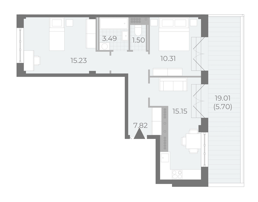 Двухкомнатная квартира на 8-ом этаже 59,2 кв.м