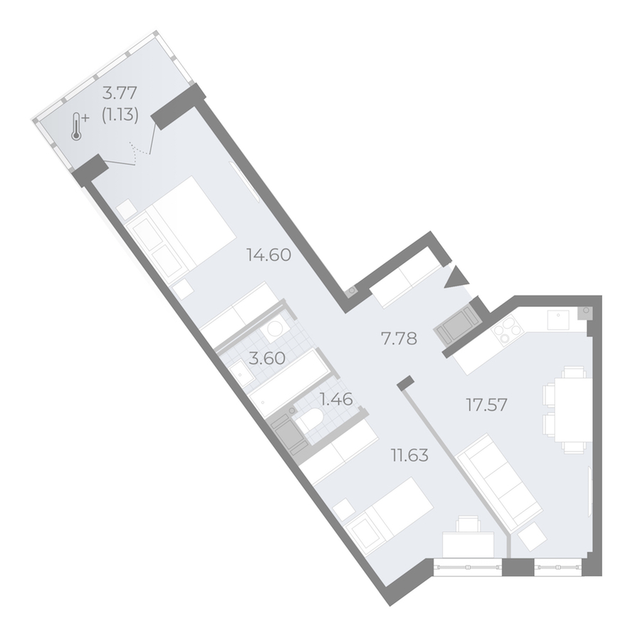 - Площадь кухни17,57 м2