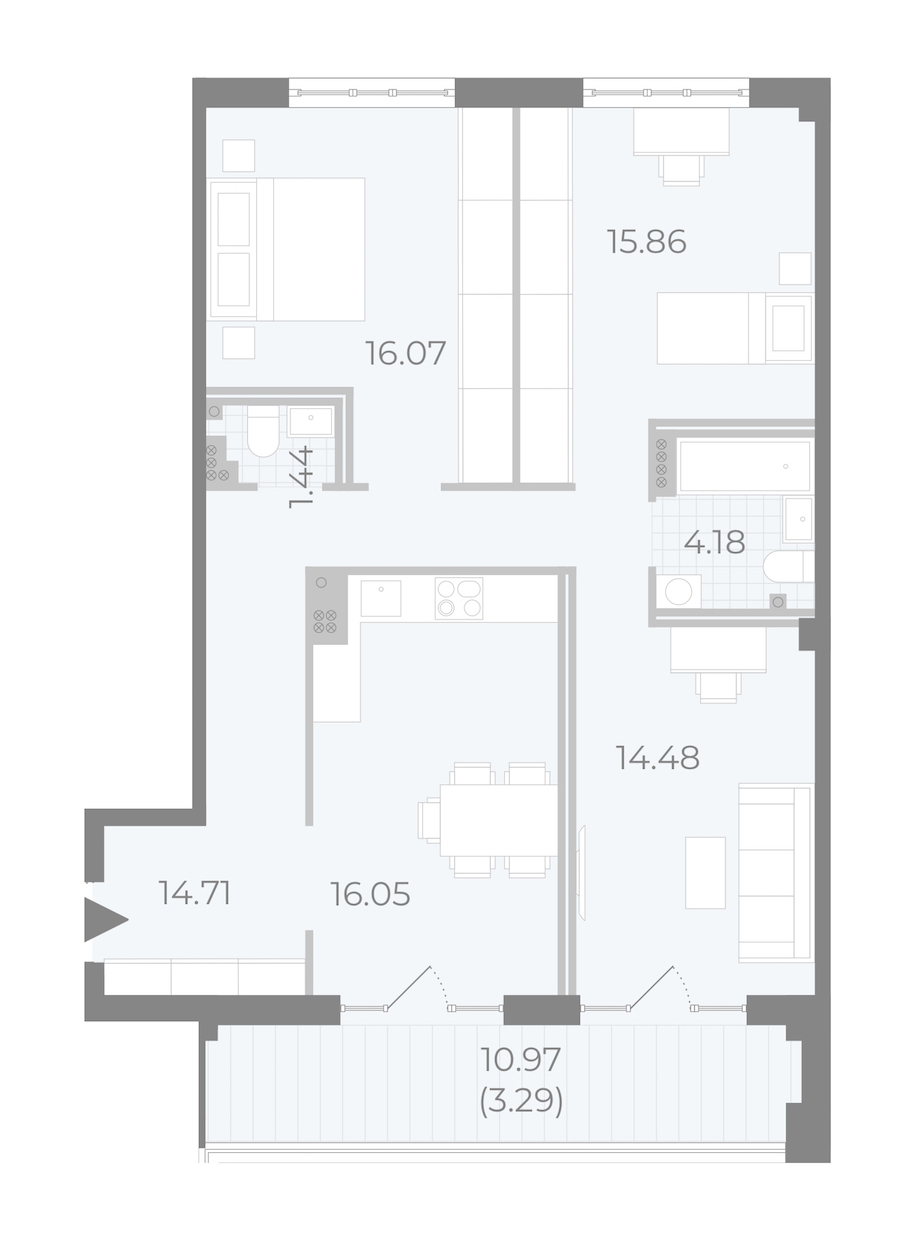 • Площадь кухни16,05 м2