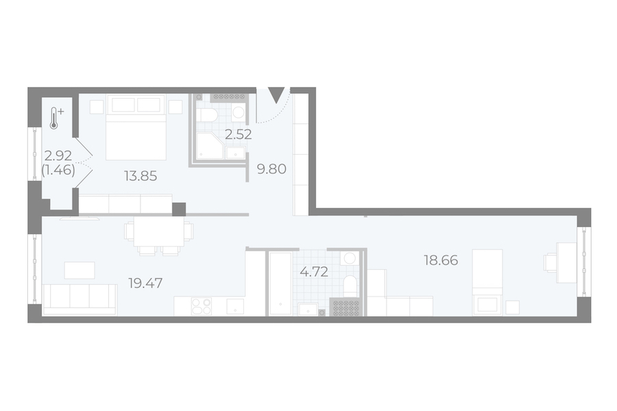Двухкомнатная квартира на 8-ом этаже 70,5 кв.м