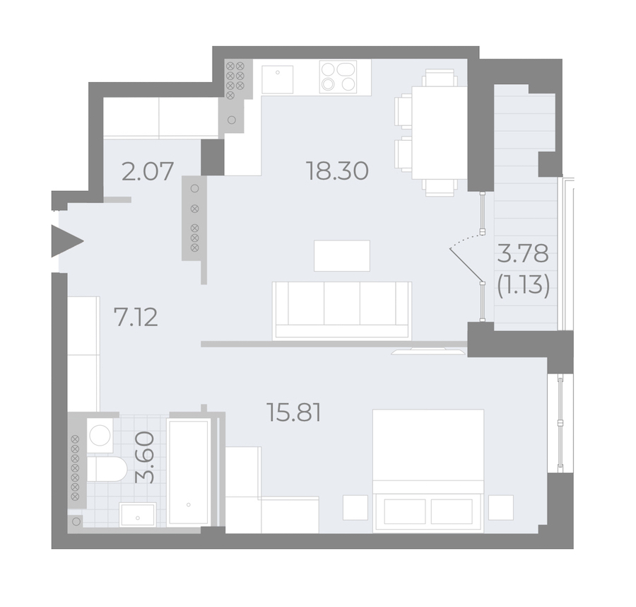 • Площадь кухни18,3 м2