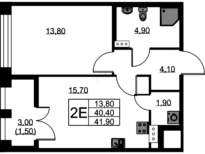 • Площадь41,9 м2